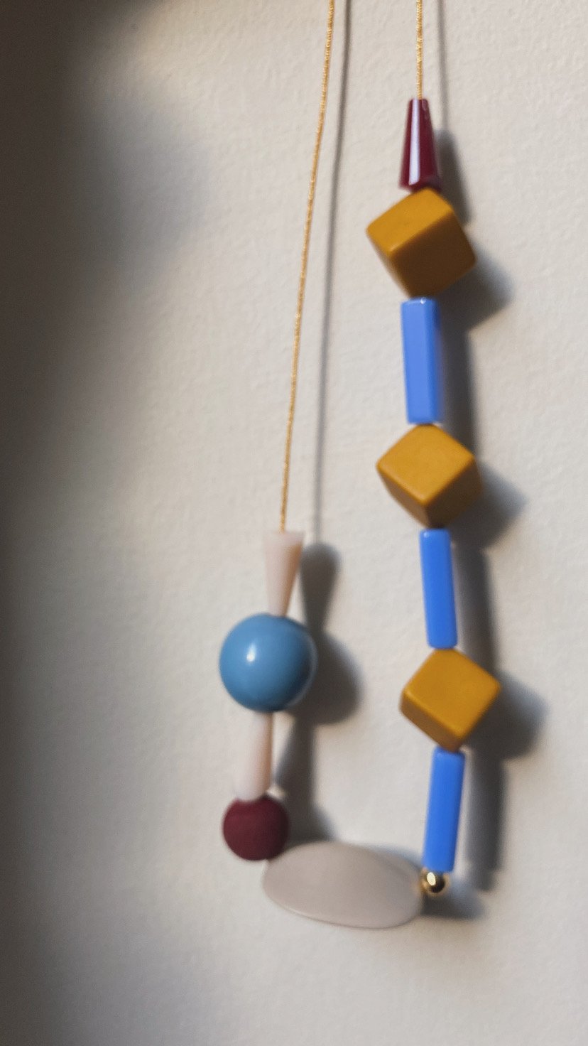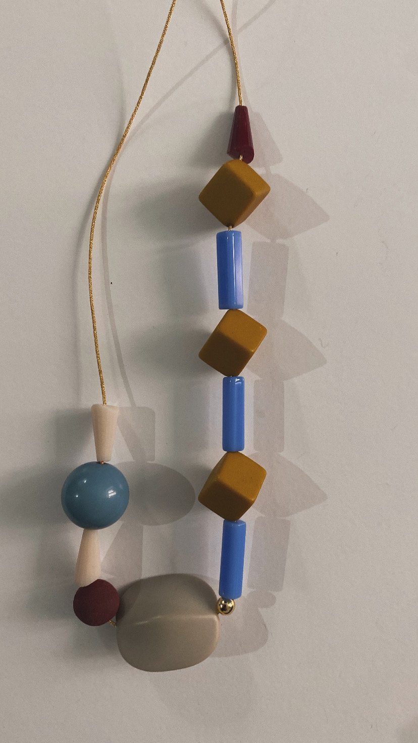 Collar de hilo de seda japonesa y cierre de plata chapada en oro, compuesta por piezas de resina, algunas de ellas vintage.
