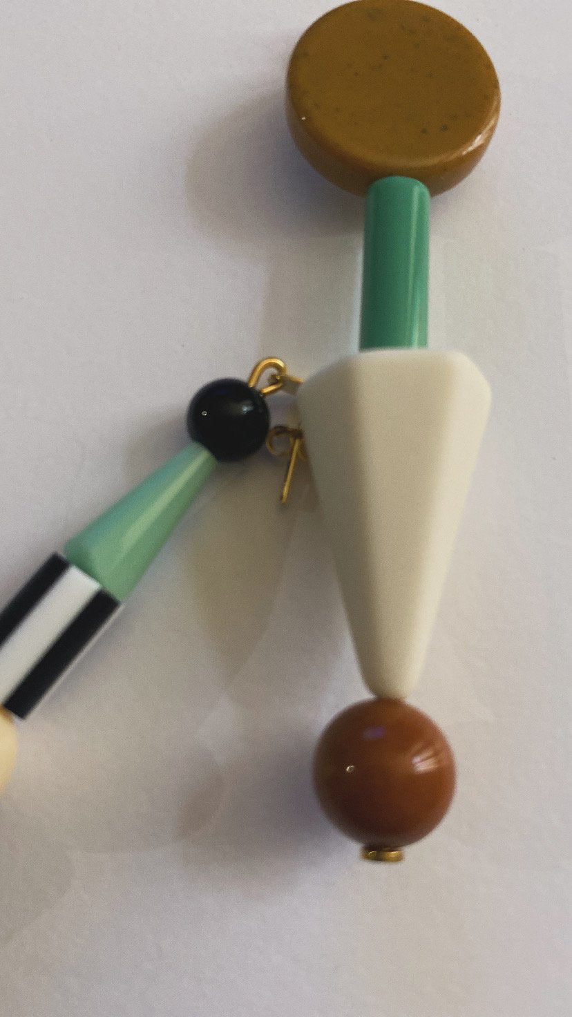 Par de pendientes compuesto por piezas de resina vintage, vidrio, Onix y bases de Goldfilled.