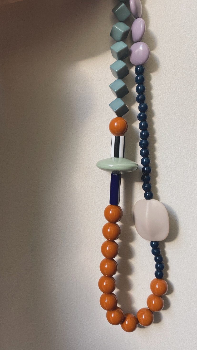 Collar de hilo de seda japonesa y cierre de plata chapada en oro, compuesta por piezas de resina, algunas de ellas vintage.
