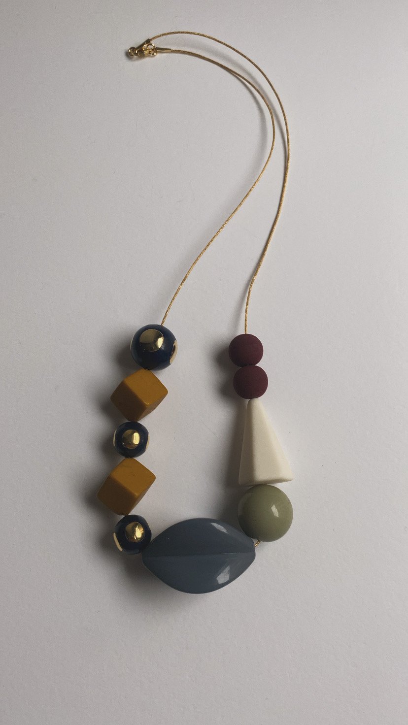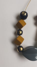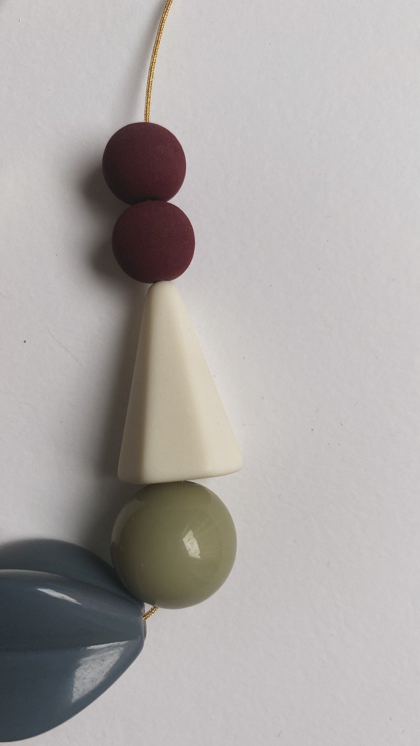 Gargantilla de hilo de seda japonesa y cierre de plata chapada en oro, compuesta por piezas de resina, piedra de lava italiana, algunas de ellas vintage.