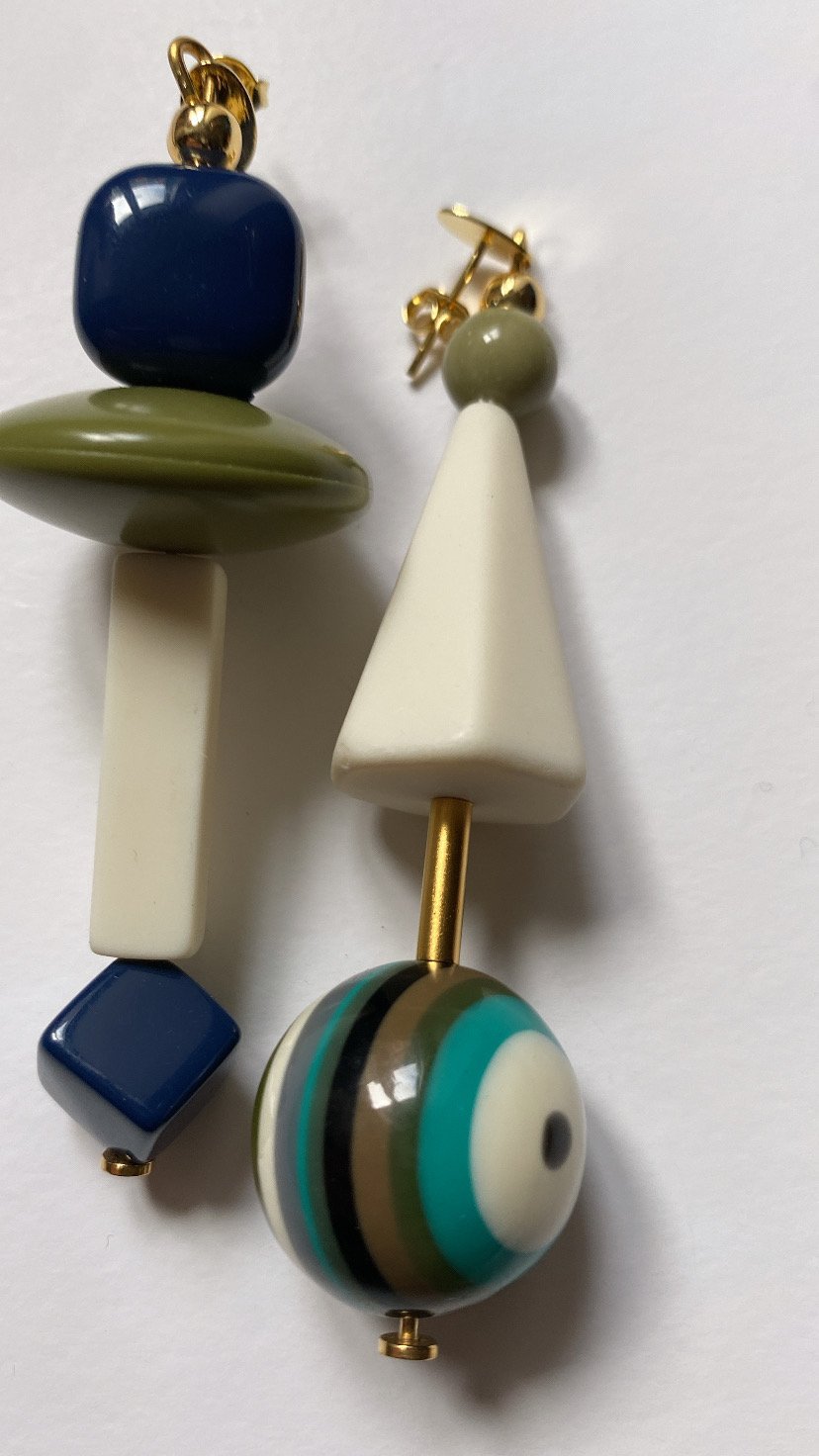 Par de pendientes compuesto por piezas de resina vintage, Agata, latón y bases de Goldfilled.